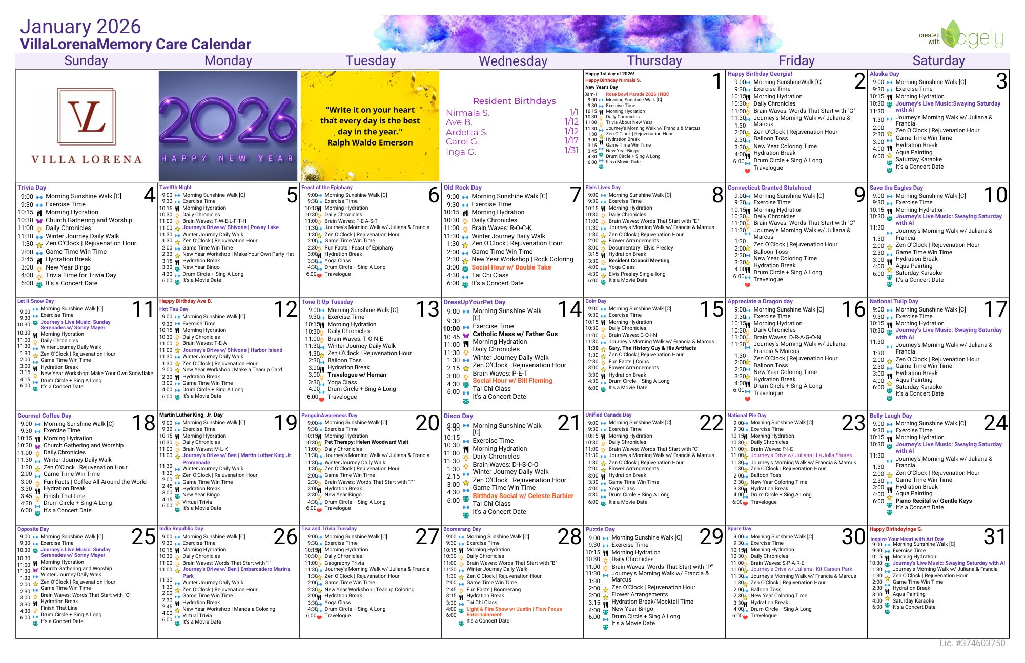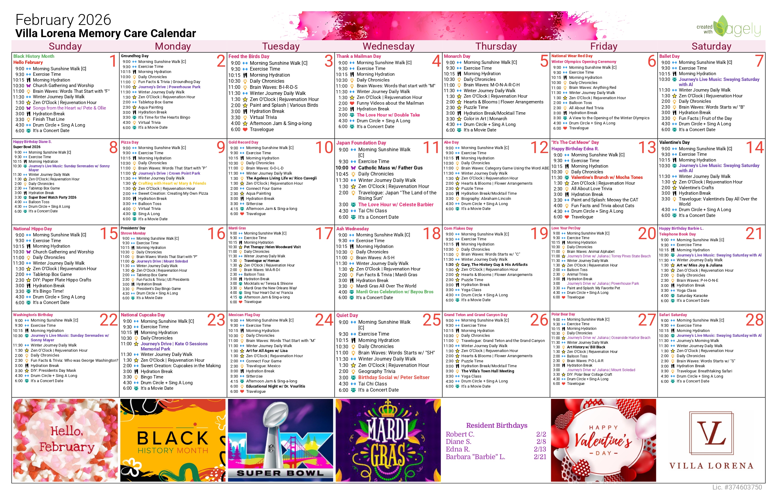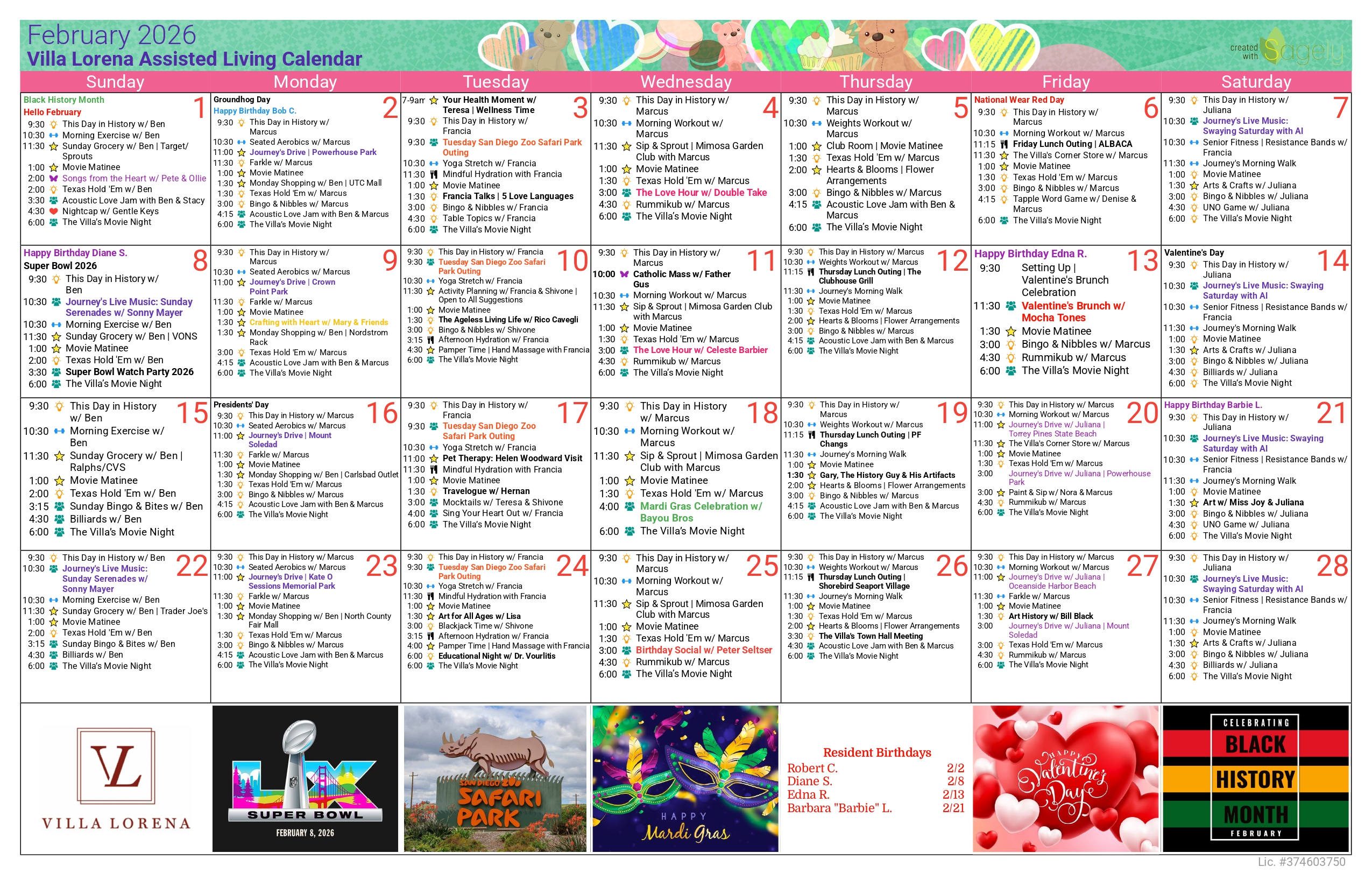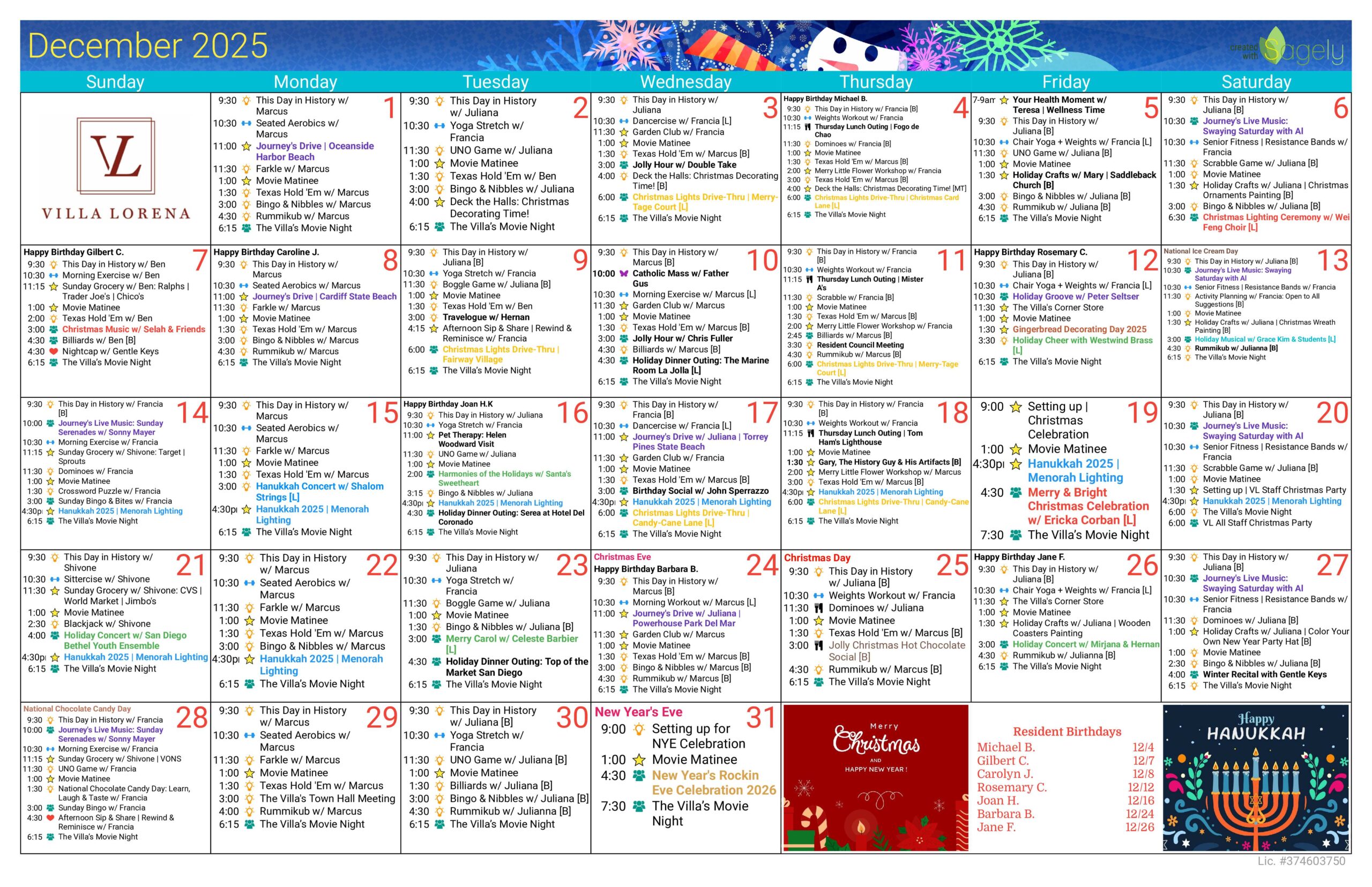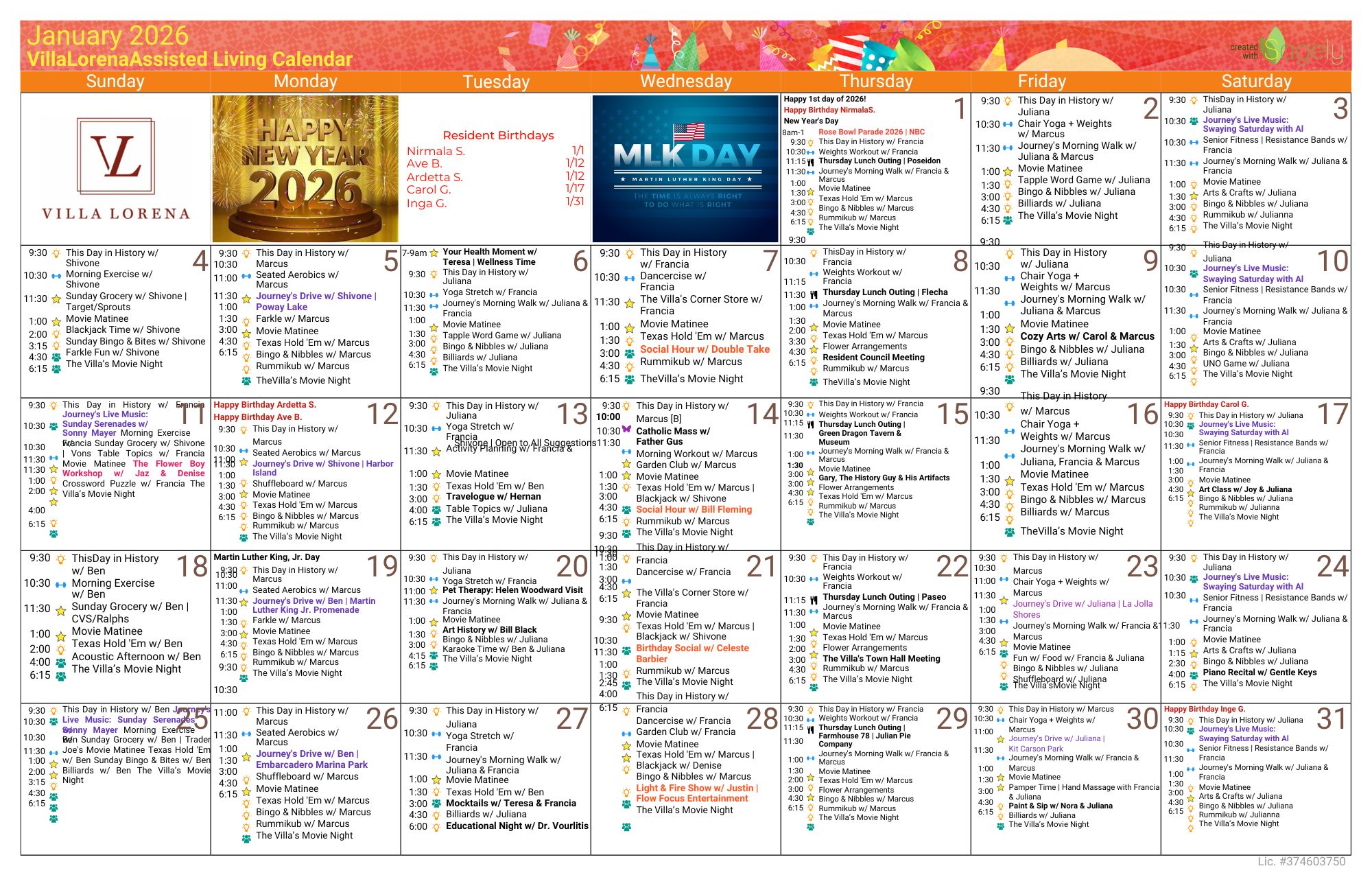 Want Us To Contact You? We will be in touch shortly. Assisted Living Calendar DOWNLOAD CALENDAR Memory Care Calendar DOWNLOAD CALENDAR Enjoy your golden years at Villa Lorena! Discover our loving community, schedule a village tour, and secure your dream apartment today! Request a Tour
