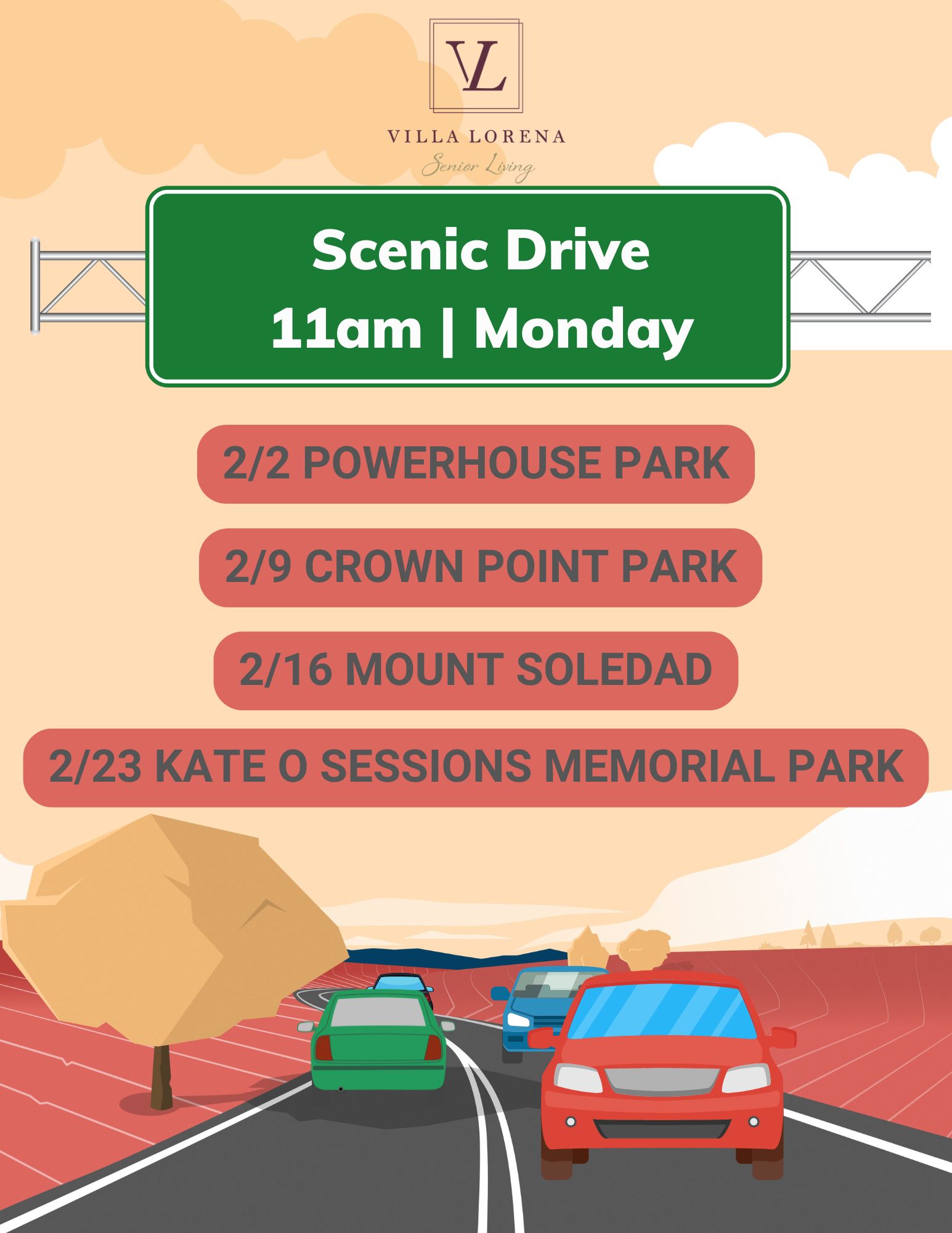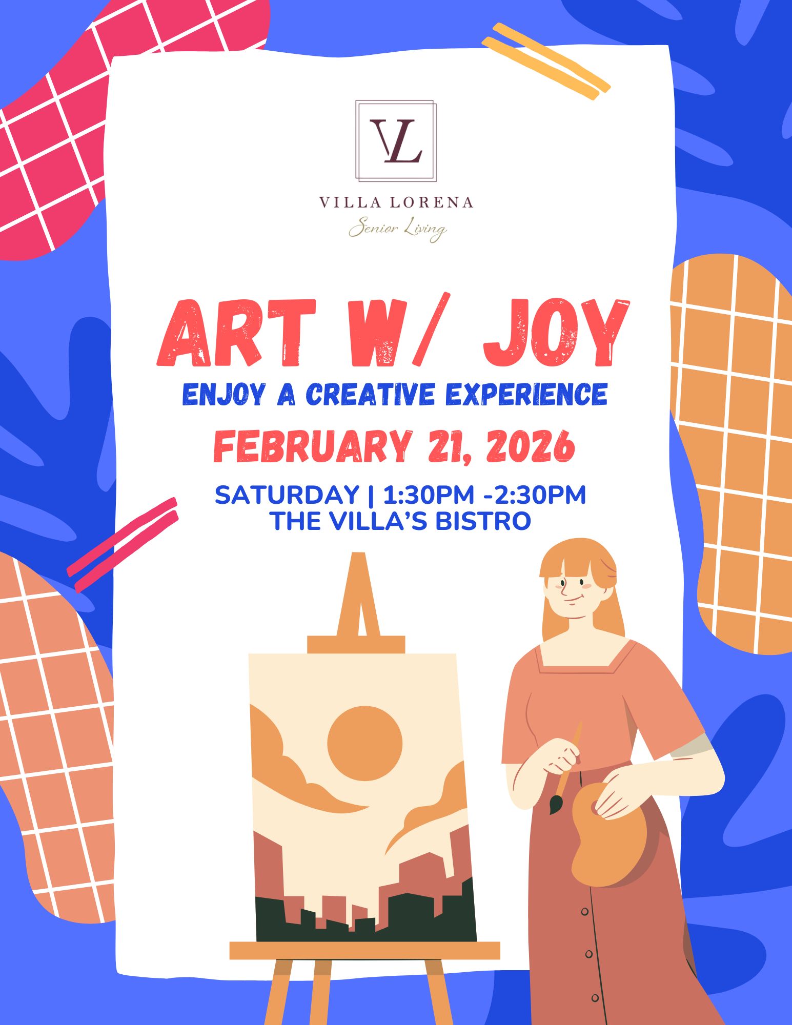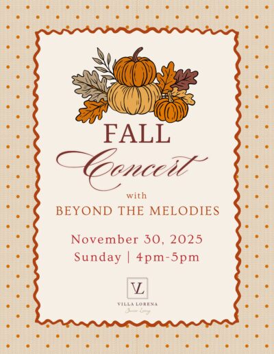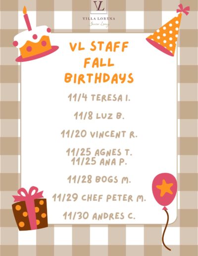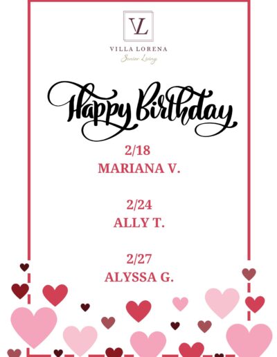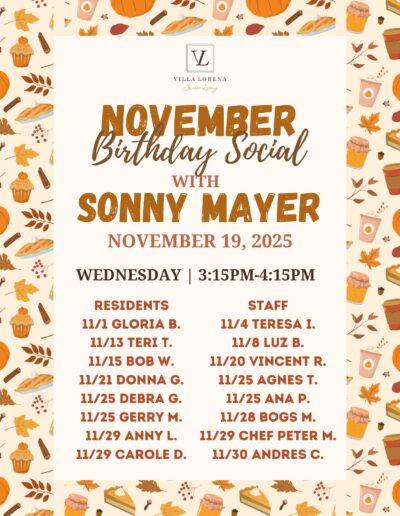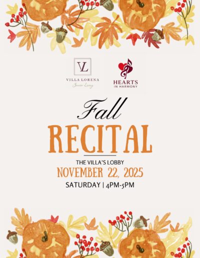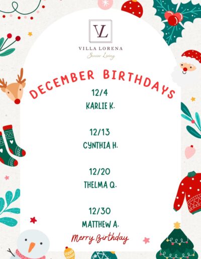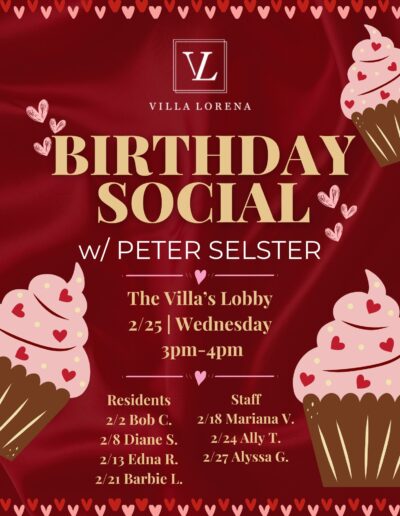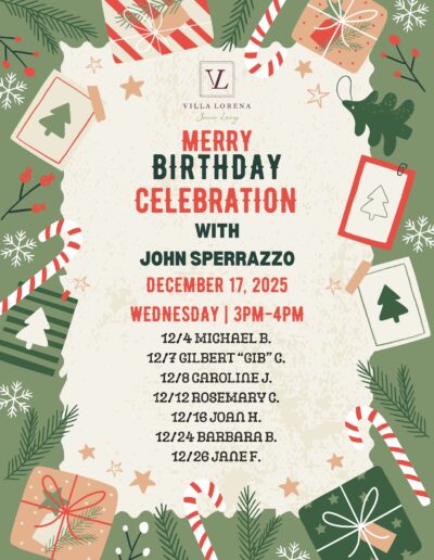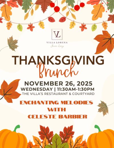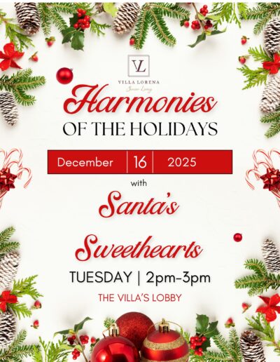 Want Us To Contact You? We will be in touch shortly. Upcoming Events Enjoy your golden years at Villa Lorena! Discover our loving community, schedule a village tour, and secure your dream apartment today! Request a Tour