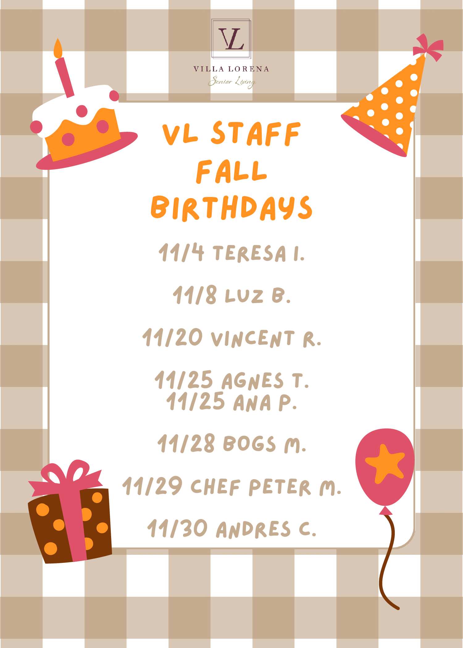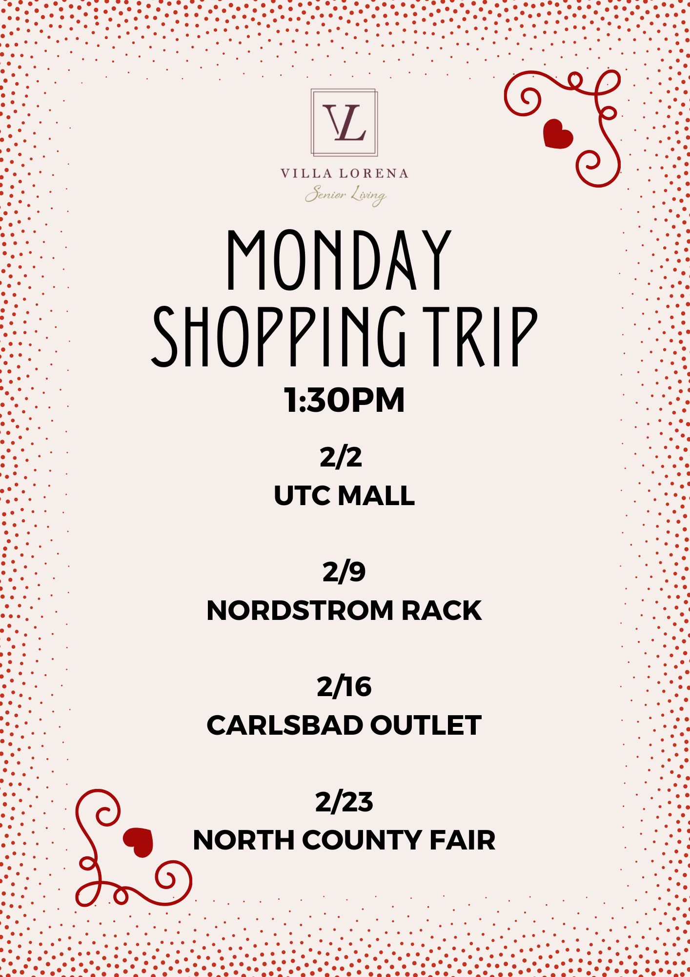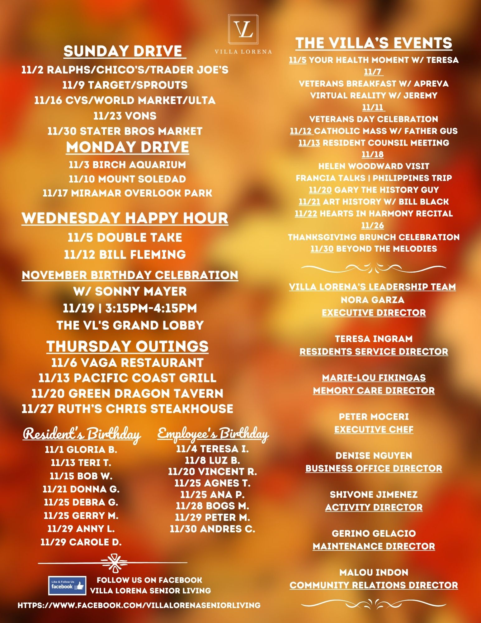 Want Us To Contact You? We will be in touch shortly. Upcoming Events Enjoy your golden years at Villa Lorena! Discover our loving community, schedule a village tour, and secure your dream apartment today! Request a Tour